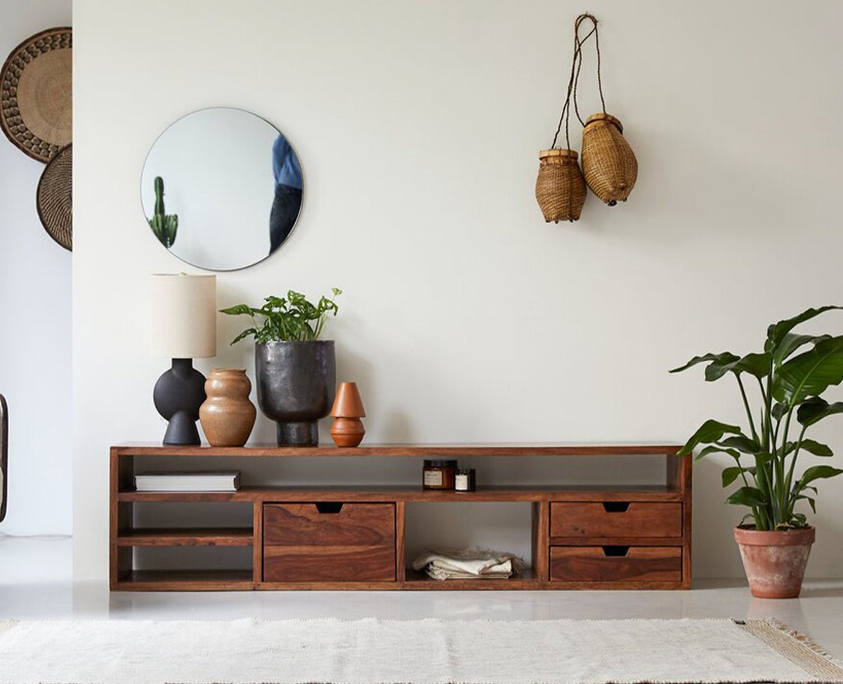 Sidon TV Cabinet Unit is a perfect solid wood Tv Cabinet. Use of Sheesham Wood as primary material gives this Tv Cabinet a solid & sturdy look. Secondary material is used as MDF is used in the Drawer Bottom. We offer free country-wide shipping and free installation service. The wood used in the furniture is perfectly seasoned for optimum moisture content, to reduce the possibility of seasonal expansion or contraction of the products.