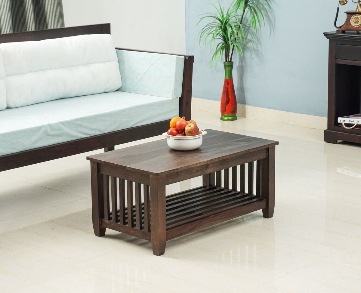 Kochi Solid Wood Coffee Table with shelves is a perfect solid wood Coffee Table. Use of Sheesham Wood as primary material gives this Coffee Table a solid & sturdy look. We offer free country-wide shipping and free installation service. The wood used in the furniture is perfectly seasoned for optimum moisture content, to reduce the possibility of seasonal expansion or contraction of the products.