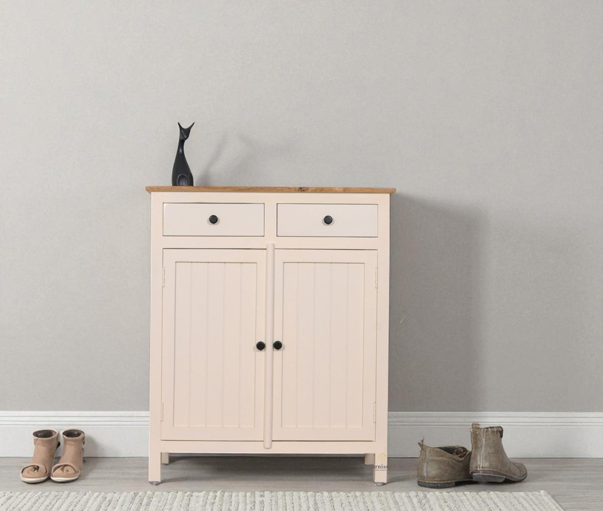 Generic Name: Spain Solid Mango Wood Shoe Rack Cabinet- 2 Doors & 2 Drawers