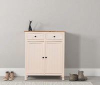 Spain Solid Mango Wood Shoe Rack Cabinet- 2 Doors & 2 Drawers - (Frosty White)