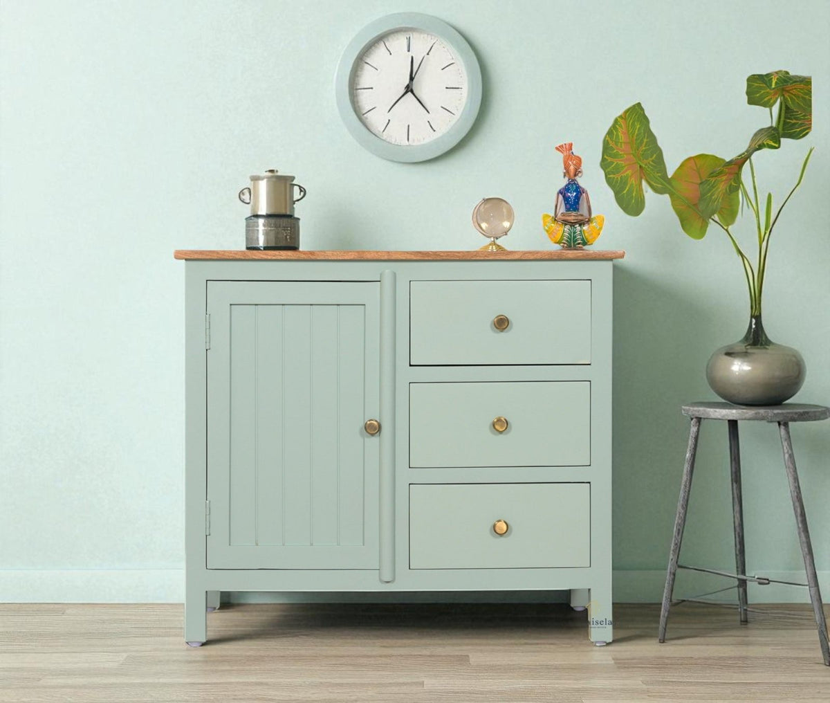 Spain Solid Mango Wood Sideboard Cabinet-Three Drawers & One Door - (Silt Green)