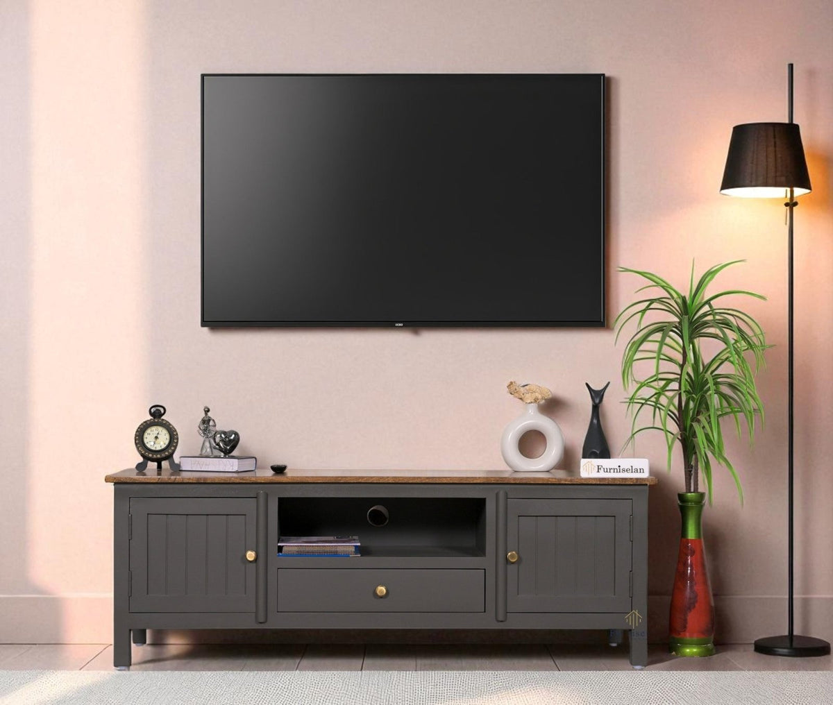 Spain Solid Mango Wood Tv cabinet-Two Doors and One Drawer - (Slate Grey)