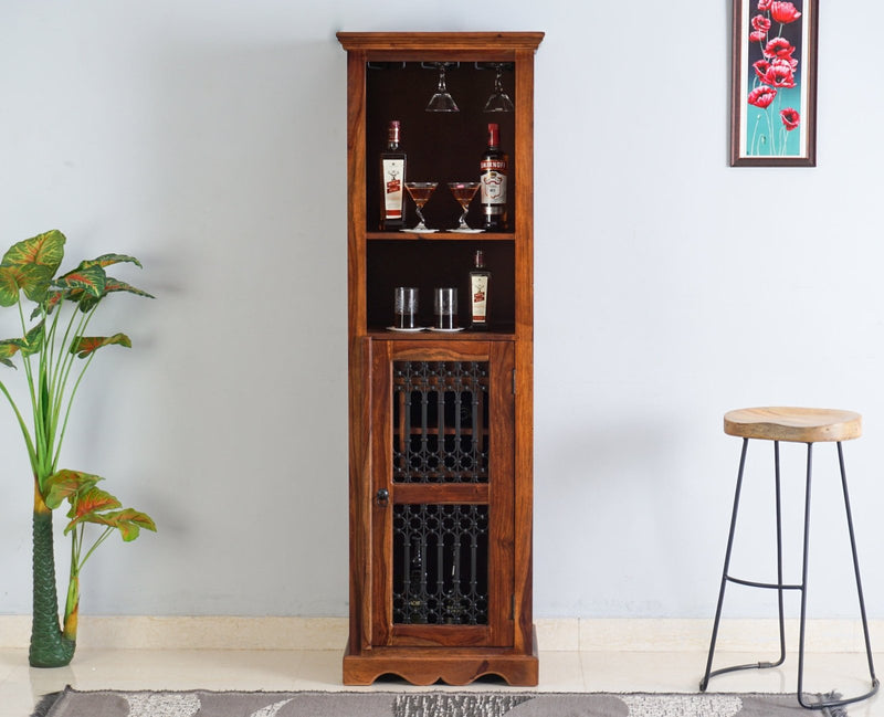 Storage: Sweden Sheesham Wood Bar Unit comes with One Door, Glass & Bottle Holder storage option.