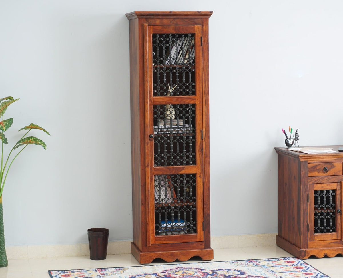 Sweden Sheesham Wood Single Door Book Case is a perfect solid wood . Use of Sheesham Wood as primary material gives this a solid & sturdy look. Secondary material is used as Powder Coated Metal Jali , MDF is used in the Backside. We offer free country-wide shipping and free installation service. The wood used in the furniture is perfectly seasoned for optimum moisture content, to reduce the possibility of seasonal expansion or contraction of the products.