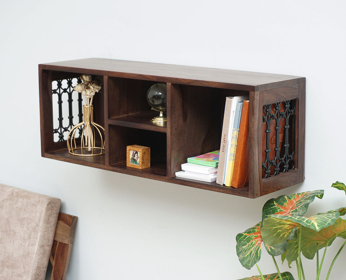 Sweden Solid Wood Wall Shelve is a perfect solid wood . Use of Sheesham Wood as primary material gives this a solid & sturdy look. Secondary material is used as Powder Coated Metal Jali , MDF is used in the Backside. We offer free country-wide shipping and free installation service. The wood used in the furniture is perfectly seasoned for optimum moisture content, to reduce the possibility of seasonal expansion or contraction of the products.
