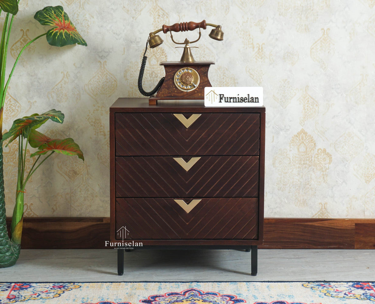 Victoria Wooden Three Drawer Bedside Table Nightstand is a perfect solid wood Bedside Table. Use of Mango Wood as primary material gives this Bedside Table a solid & sturdy look. Secondary material is used as Metal Legs and MDF are used in the Drawer Bottom & Backside. We offer free country-wide shipping and free installation service. The wood used in the furniture is perfectly seasoned for optimum moisture content, to reduce the possibility of seasonal expansion or contraction of the products.