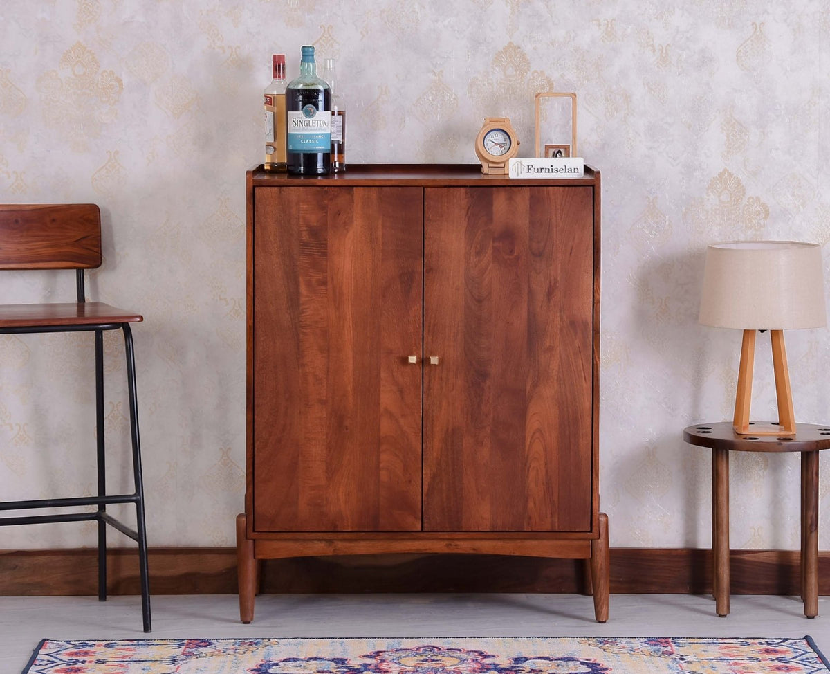 Wellington Solid Wood Bar Cabinet is a perfect solid wood Bar Cabinet. Use of Mango Wood as primary material gives this Bar Cabinet a solid & sturdy look. Secondary material is used as MDF is used in the Drawer Bottom & Backside. We offer free country-wide shipping and free installation service. The wood used in the furniture is perfectly seasoned for optimum moisture content, to reduce the possibility of seasonal expansion or contraction of the products.