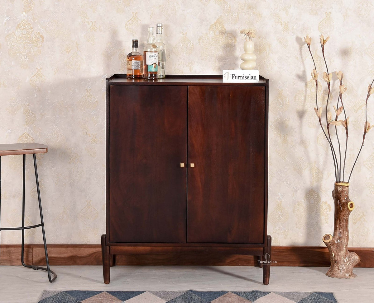 Wellington Solid Wood Bar Cabinet is a perfect solid wood Bar Cabinet. Use of Mango Wood as primary material gives this Bar Cabinet a solid & sturdy look. Secondary material is used as MDF is used in the Drawer Bottom & Backside. We offer free country-wide shipping and free installation service. The wood used in the furniture is perfectly seasoned for optimum moisture content, to reduce the possibility of seasonal expansion or contraction of the products.